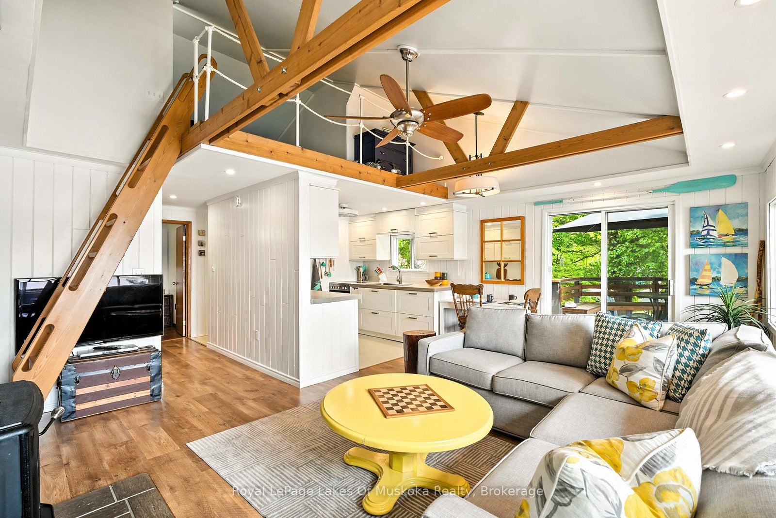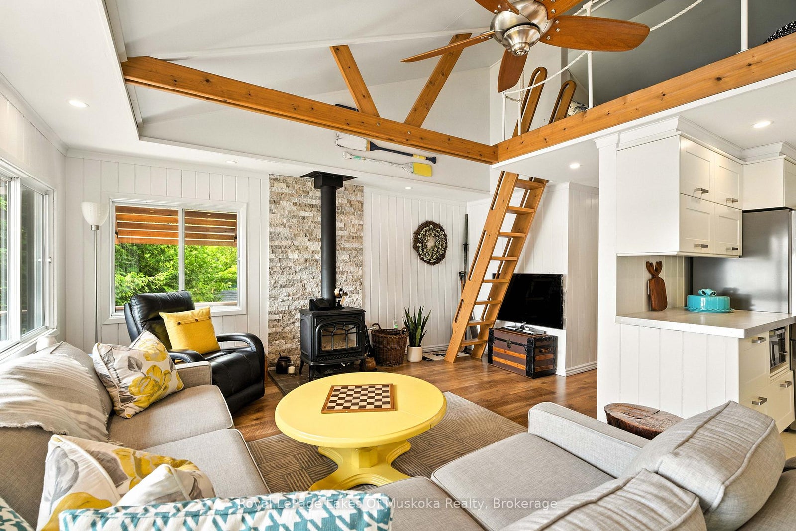 This delightful fully furnished cottage sits just steps from hard-packed sand waterfront with coveted south exposure providing all-day sun. The waterfront offers easy walk-in sandy entry transitioning to deeper water off the private dock, perfect for swimming, boating, kayaking, and all water sports activities. The bright, open-concept interior features wide lake views throughout the main living spaces. The kitchen and living room combine seamlessly, creating excellent space for entertaining guests and easy daily living. Two comfortable bedrooms and full bathroom provide accommodation while the efficient airtight wood stove ensures reliable warmth during cooler autumn mornings. The practical loft area offers additional sleeping space for overflow guests or valuable storage for seasonal items.The spacious entertainment deck off the main living area extends your living space outdoors, ideal for barbecues, dining, and relaxing while enjoying those wide lake views. The property includes a dedicated firepit area for evening gatherings, storytelling and making memories with family and friends.Set on a gently sloped lot that levels nicely from cottage to waterfront, the property combines easy accessibility with excellent unobstructed lake vistas. The location provides outstanding convenience just 8 minutes to Dwight's shops, convenience stores, and popular bakeries and only 15 minutes to Huntsville town centre with shopping, dining, and hospital facilities.This represents exceptional value in today's competitive waterfront market. The cottage comes completely turnkey with all furnishings and contents included, allowing immediate occupancy and enjoyment without additional investment. This cottage will steal your heart - see it today.