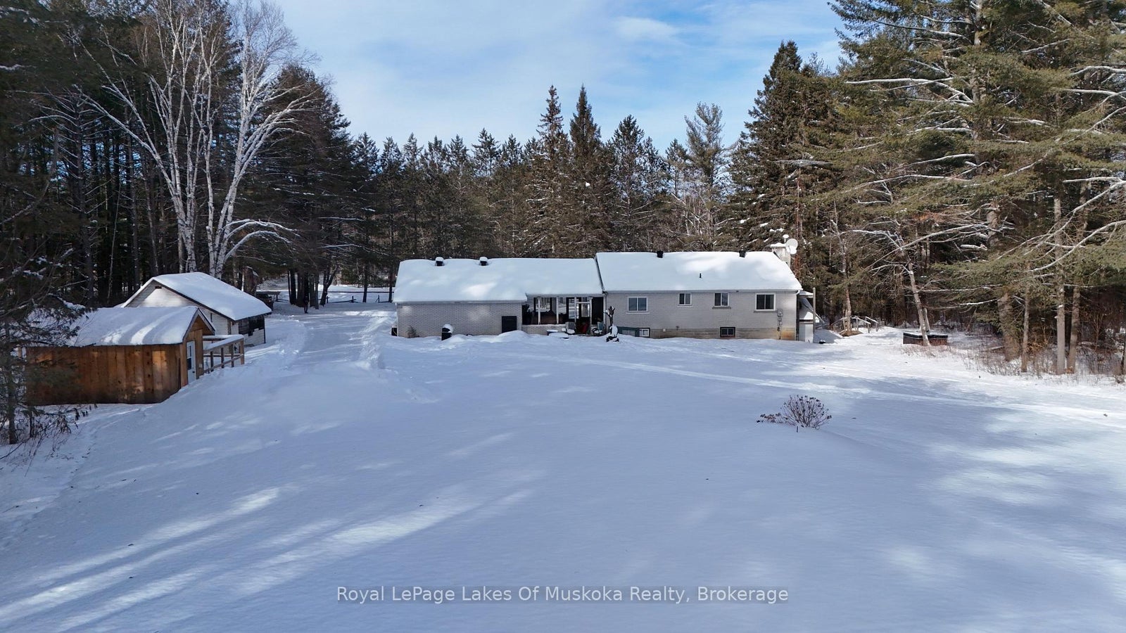 Tucked into the trees on a level 11+ acre parcel in Dwight, this is a rare chance to secure big land + big water-with approximately 500 feet of frontage on Hwy 60 and nearly 800 feet along the Oxtongue River. Trails wind through the property for walking and ATV exploring, and the mix of towering pines and riverfront creates a private outdoor setting you'll appreciate in every season.The 4-bedroom bungalow offers a functional, spacious layout with a breezeway connecting the double garage to the main home. The main floor includes a combined living/dining area, kitchen with stainless appliances, 2 bedrooms and a full bath. Downstairs you'll find 2 additional bedrooms and a large family room with walkout, plus access to the side yard and hot tub. Outbuildings provide excellent storage and workshop potential.The home will benefit from updating, making this a smart option for buyers who want to get into an exceptional lot and waterfront and improve the house over time. With the visibility and access of Hwy 60, it can also be a strong setup for a home-based business, while the acreage and trails make it a fantastic place to raise a family-space for kids, pets, and outdoor life.Only 10 minutes to Algonquin Park's West Gate and 15 minutes to Huntsville, this property offers a hard-to-replace setting at a compelling entry point for waterfront.